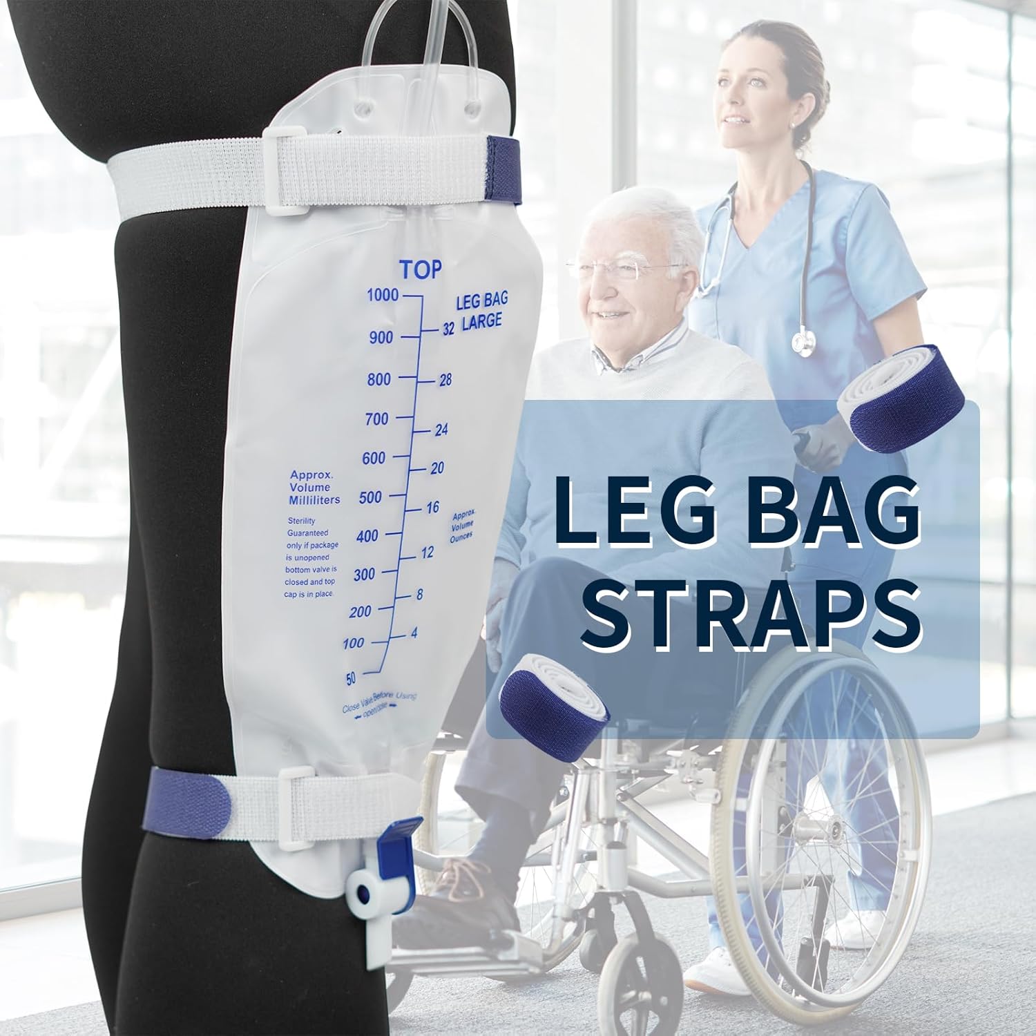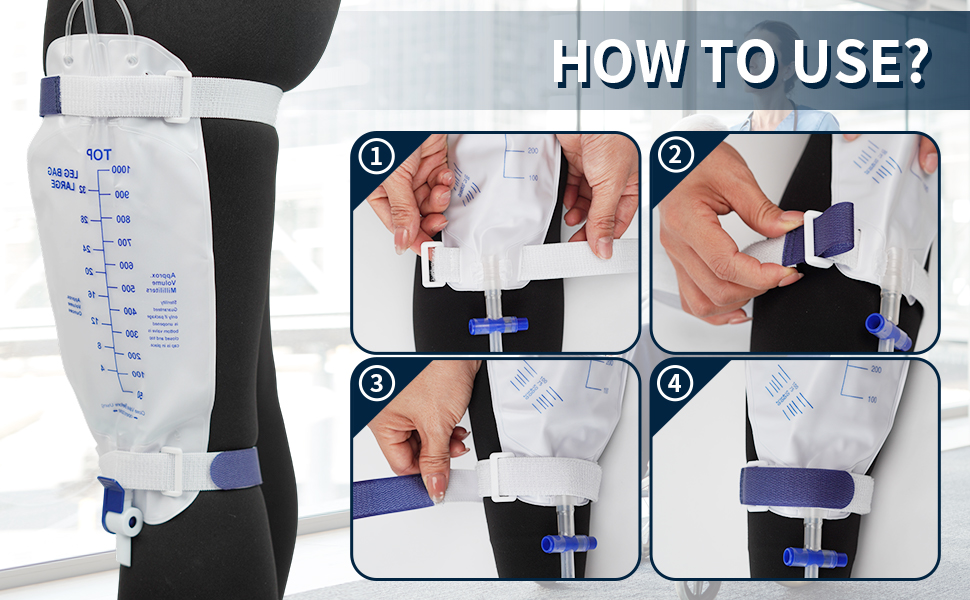 This set includes four adjustable leg bag straps designed to securely support drainage collection bags during laboratory, training, or controlled handling applications.
