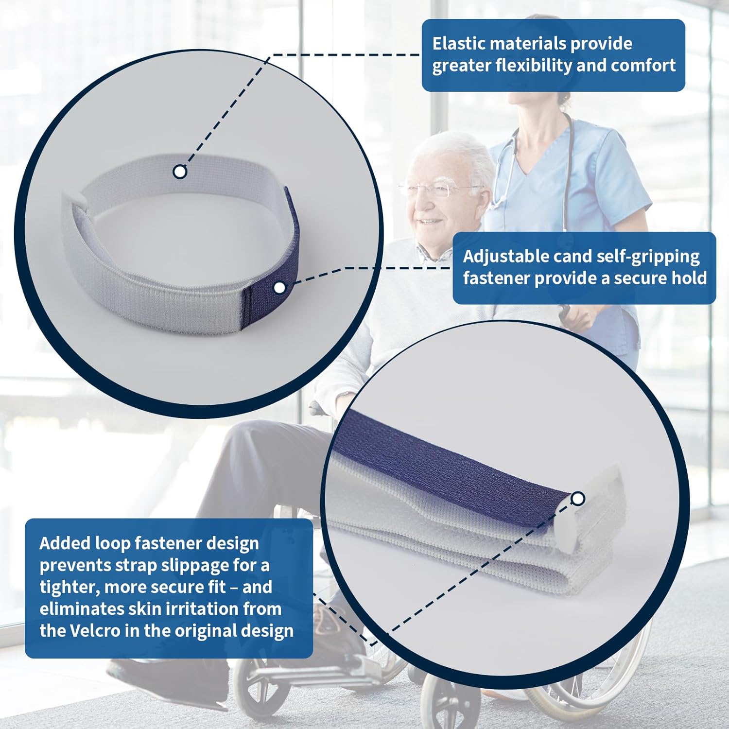 Each strap features a hook-and-loop closure, allowing quick and easy size adjustment to accommodate a wide range of positioning needs.