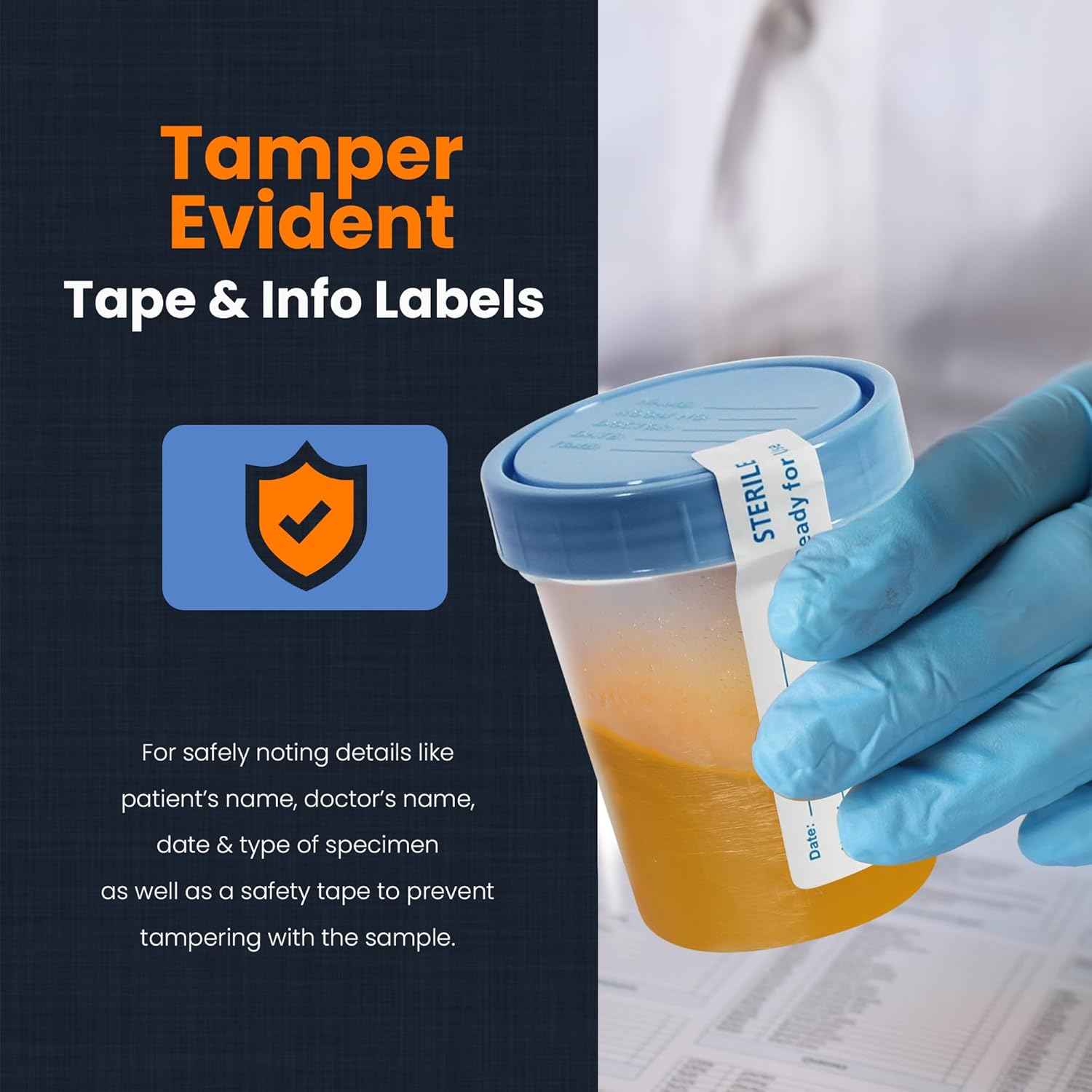 Integrated labeling areas allow clear recording of sample details for tracking and organization. The tamper-evident seal provides a visible indication if the container has been opened after closure.
