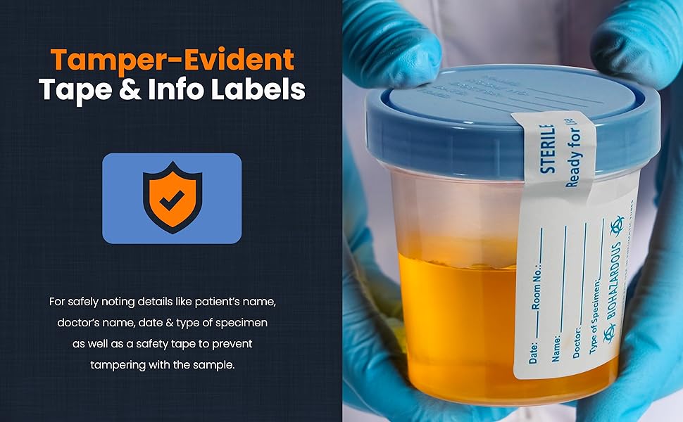 These disposable specimen cups are made from high-quality plastic and designed for clean, hygienic laboratory sample collection. Each cup includes a secure screw-on lid, a tamper-evident seal, and a labeled surface for basic sample identification.