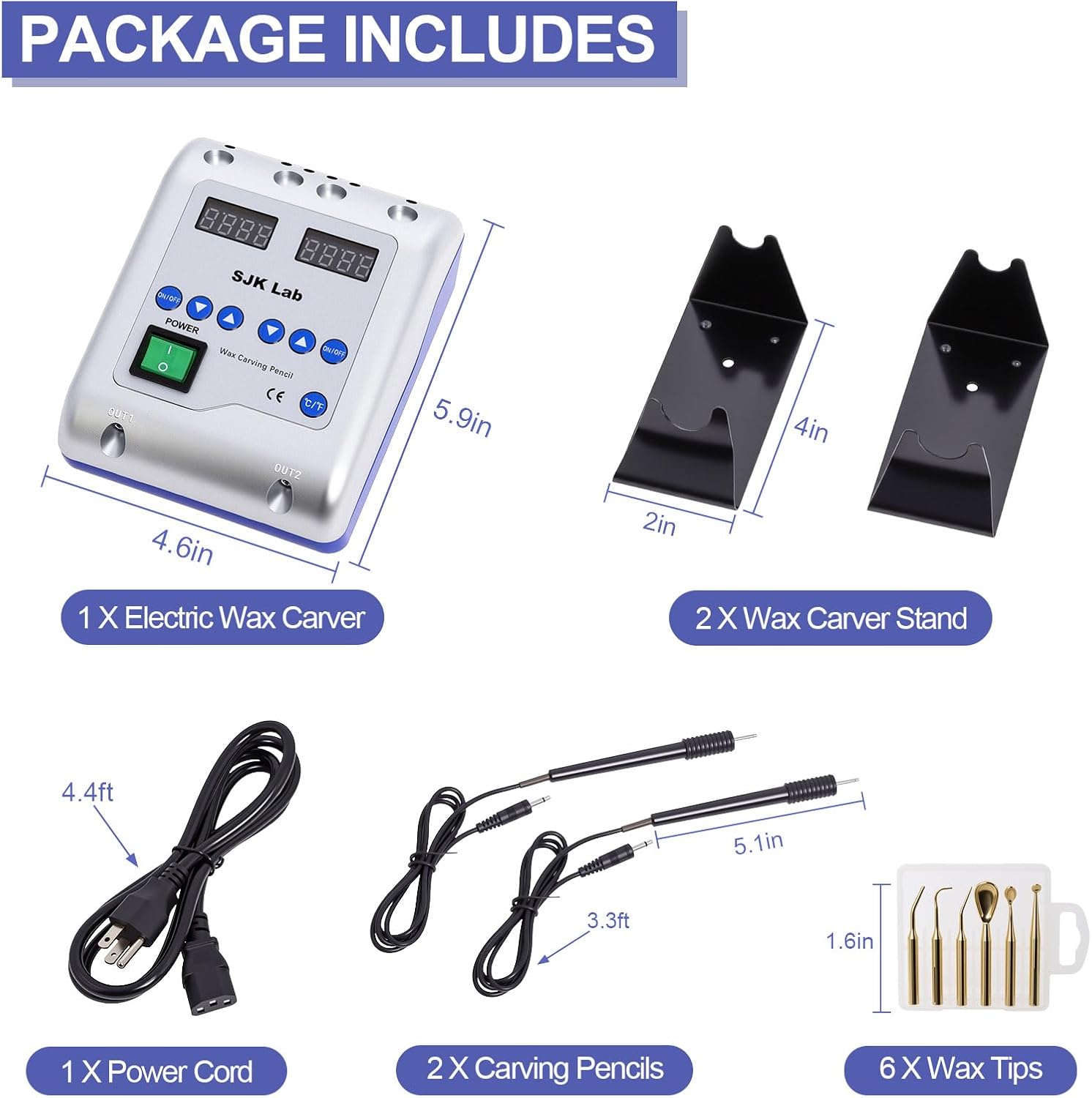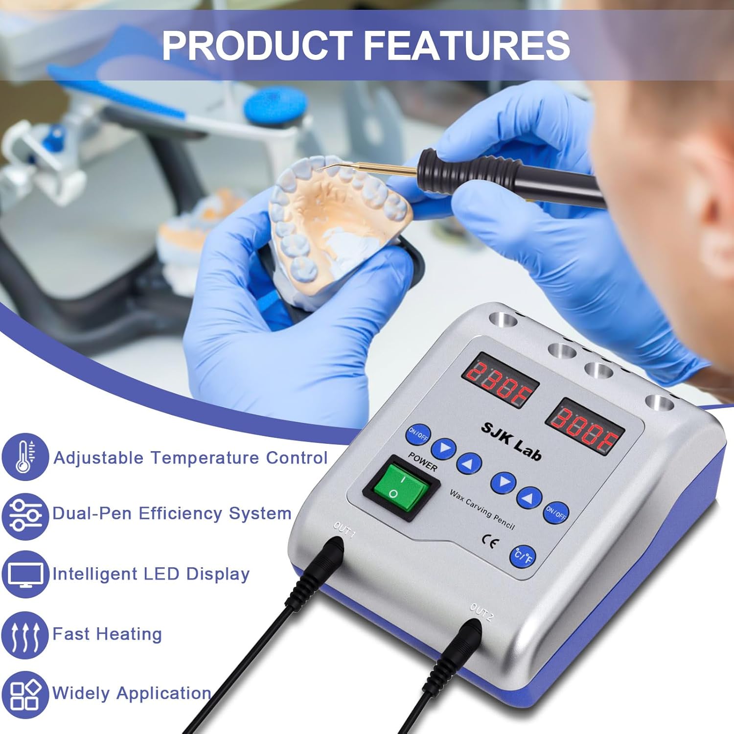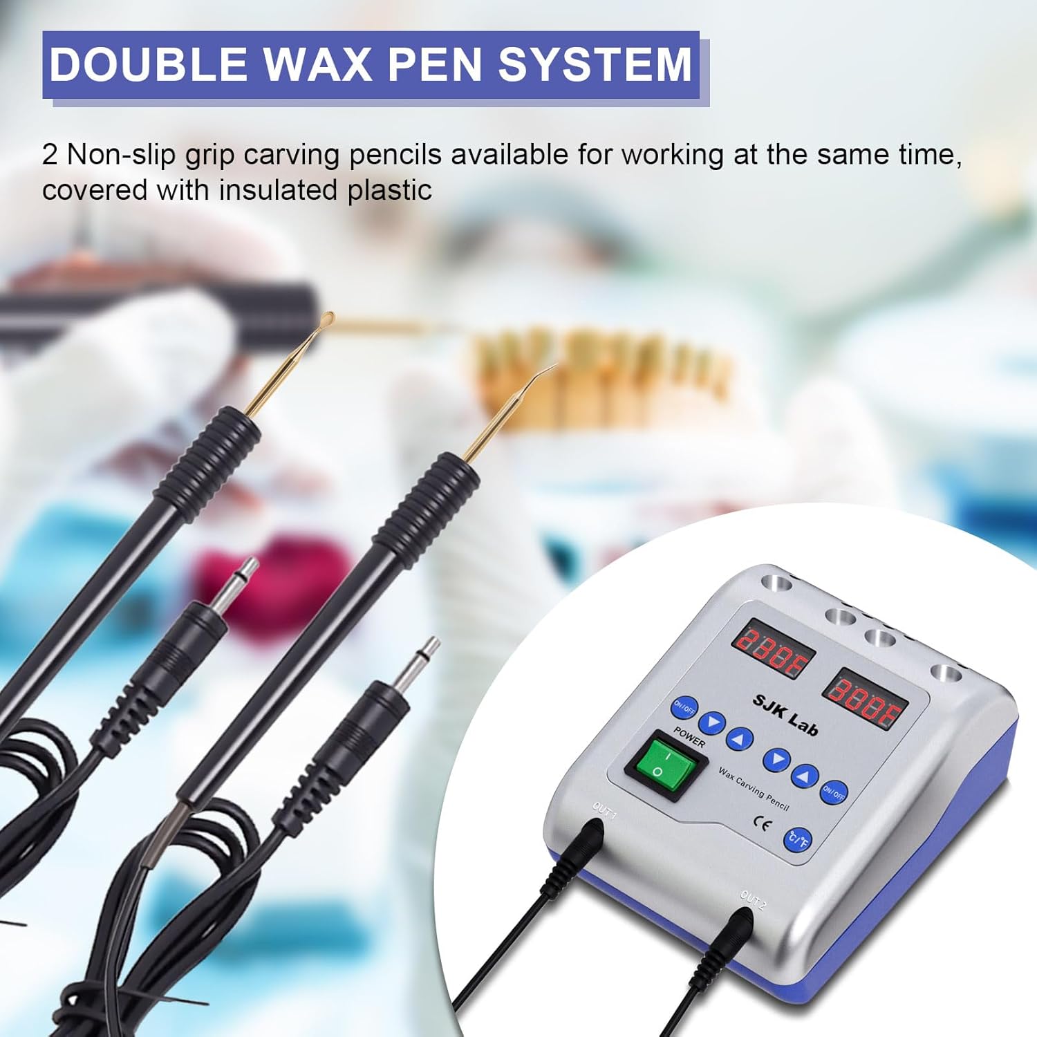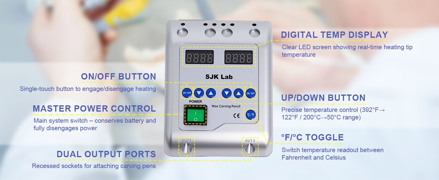 This electric wax carver is designed for precision modeling and educational laboratory use. It features an easy-to-read LED display with adjustable temperature control ranging from 50°C to 200°C (122°F–392°F), allowing users to maintain consistent heat for controlled and accurate wax shaping tasks.
