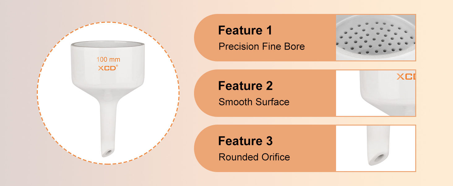 - Manufactured from high-quality porcelain, the funnel is resistant to most laboratory chemicals and capable of withstanding high temperatures. The durable construction ensures long-term use in academic and professional laboratory environments while maintaining structural stability during repeated filtration procedures.