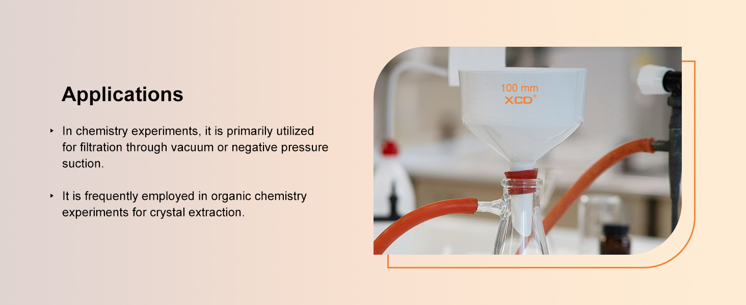 - Ideal for educational institutions, technical training centers, and laboratory research applications, this filtration funnel supports practical chemistry experiments and instructional demonstrations. It is designed to meet standard laboratory requirements while maintaining safe and reliable performance in academic settings.