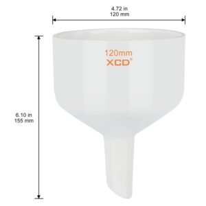 - With an outer diameter of 120mm and inner diameter of 114mm, this Buchner funnel provides adequate capacity for medium-scale laboratory experiments. The 60mm stem length allows proper connection with compatible rubber adapters and vacuum flasks for controlled filtration setups.