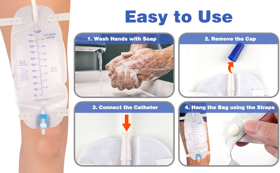 Urinary Drainage Leg Bags with Tap, 32oz – 8 Pack
